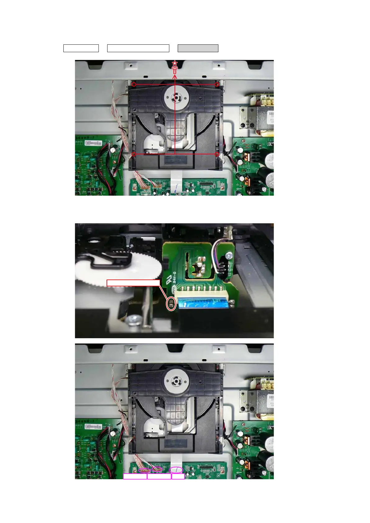 (2) Laser short-circuit in Pick-up of CD MECHANISM ASS'Y, then disconnect the connector wires and FFC cable.