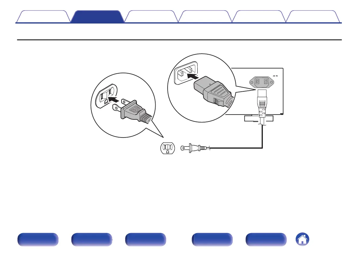 After completing all the connections, insert the power plug into the power outlet.