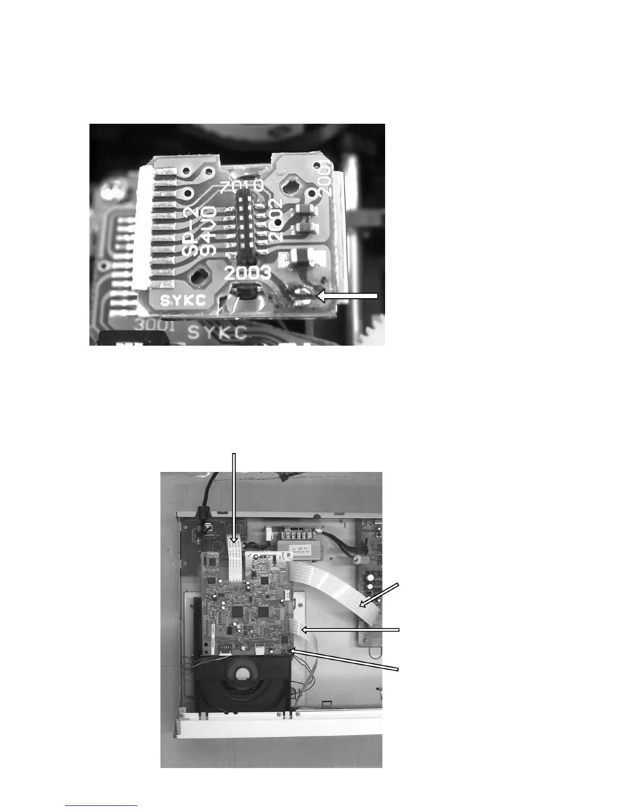 the CD decorder board, short-cut the two lands pointed by the arrow