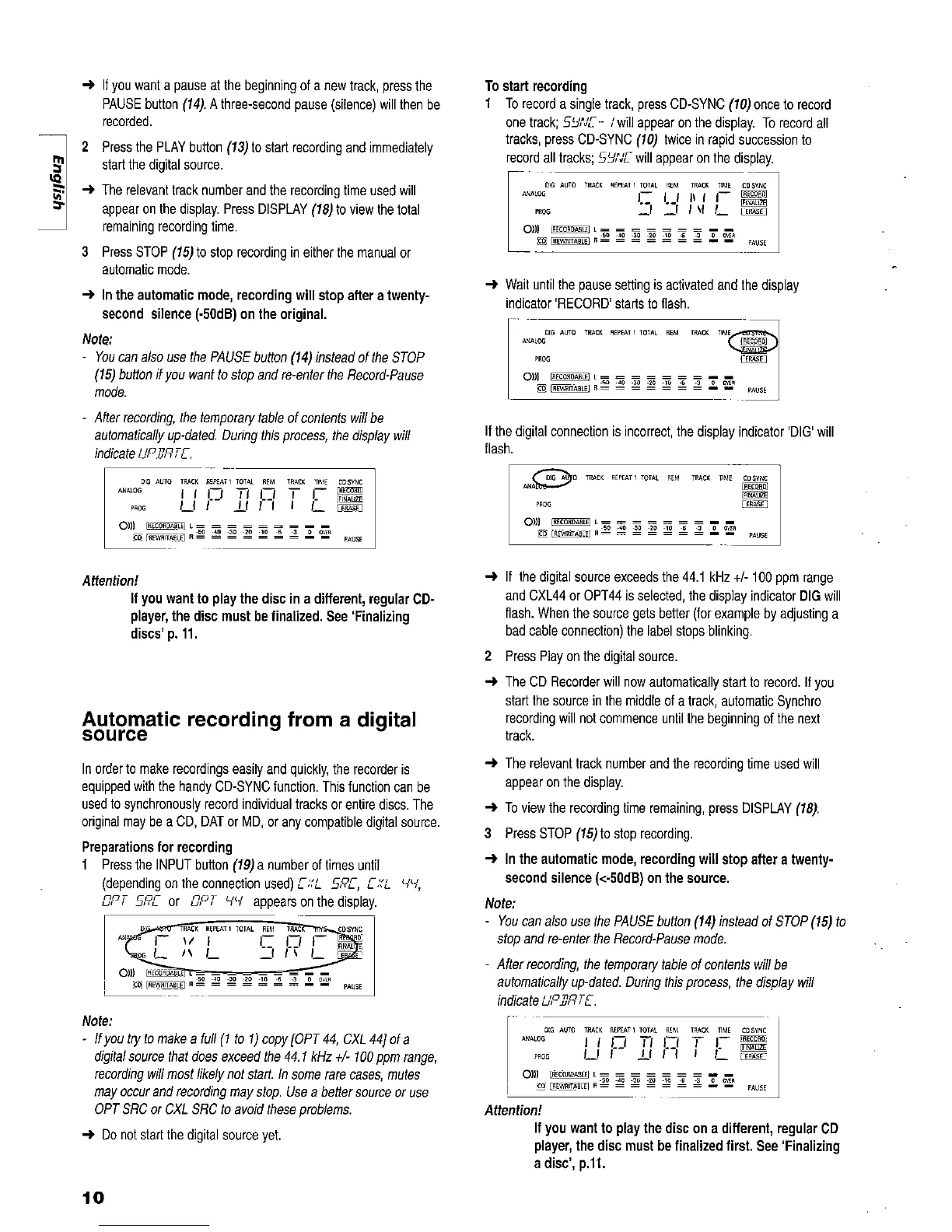 Marantz CDR-630 - Automatic Recording from a Digital Source