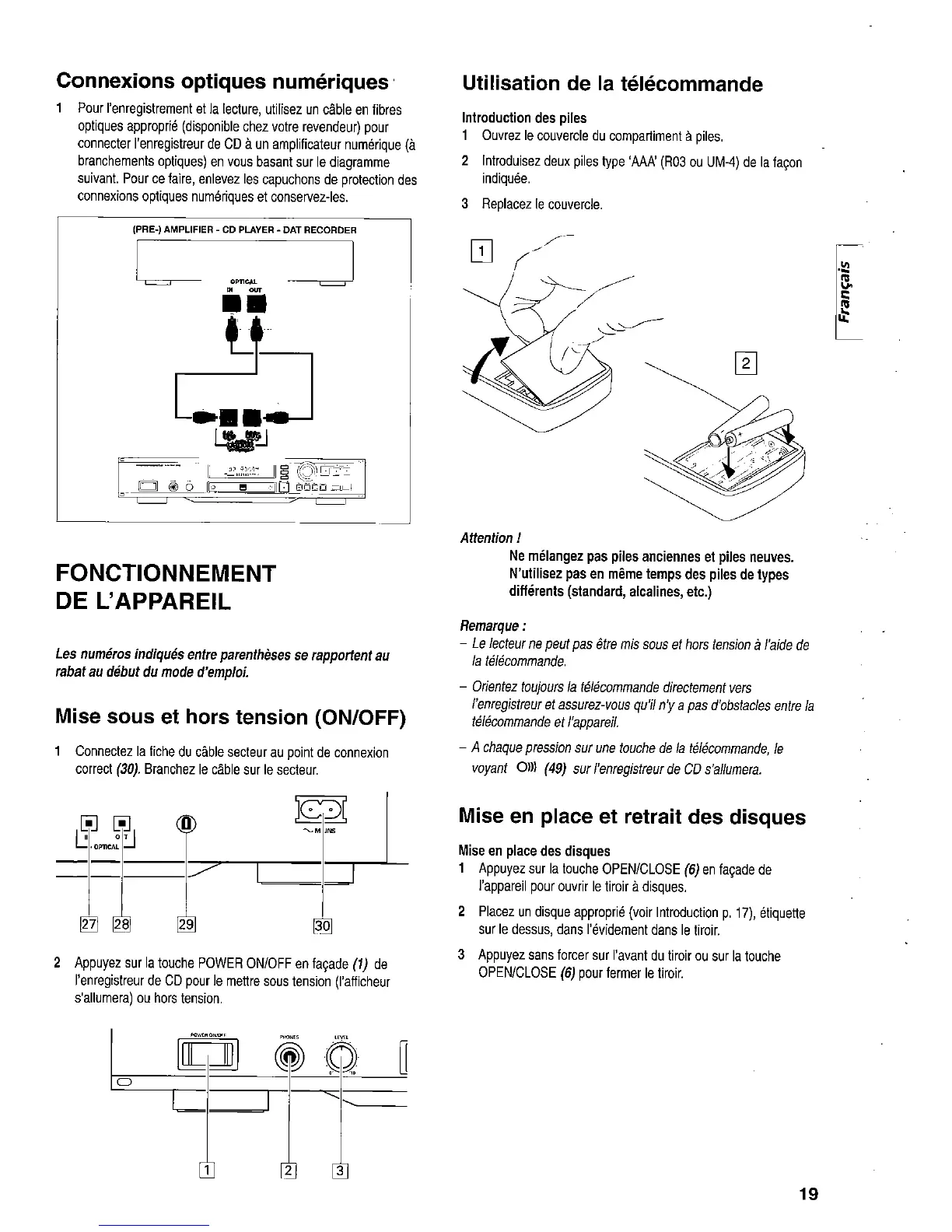 Marantz CDR-630 - Mise en place et retrait des disques