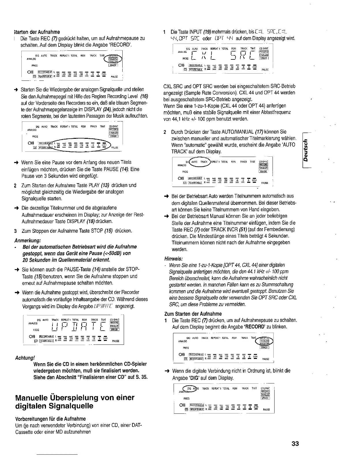 Marantz CDR-630 - Manuelle Aufnahme von einer digitalen Quelle; Preparations for recording