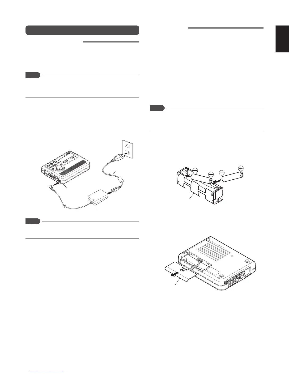 If you wish to run the recorder on battery power, follow the