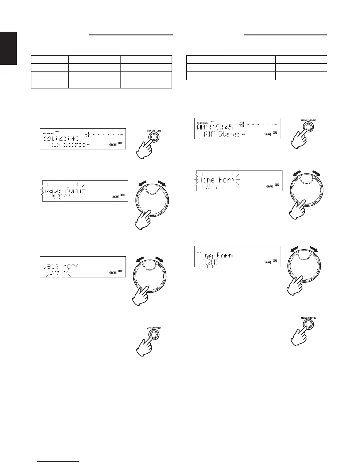 3 Turn the JOG to select the type of date form, and press