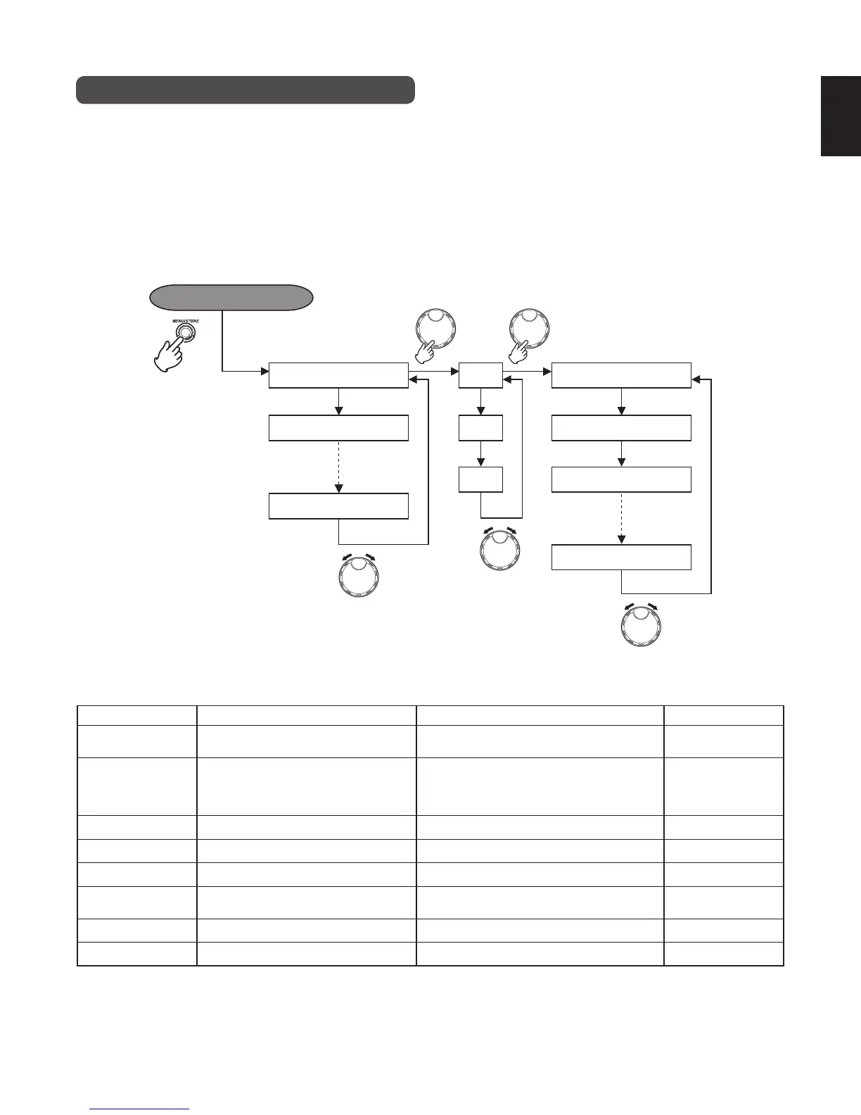 formatting the internal HD. These menus are displayed by pressing the MENU/STORE button once to enter the menu mode.