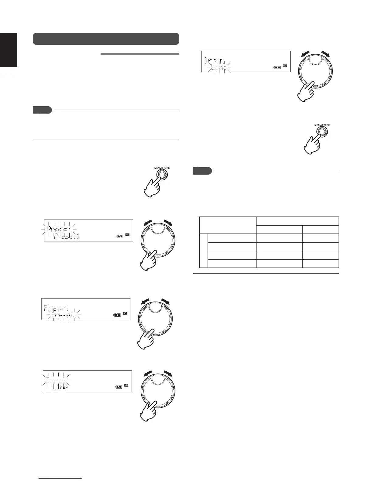5 Turn the JOG to select the type of input source (“MIC”,