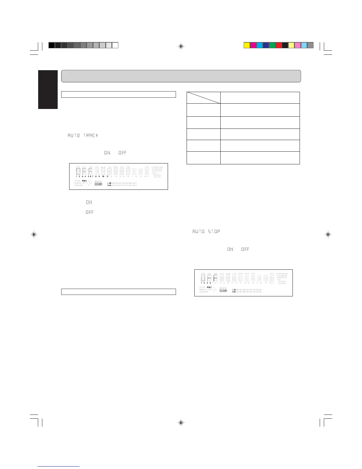 item is available. If Auto Track is OFF, Auto Stop is automati-
