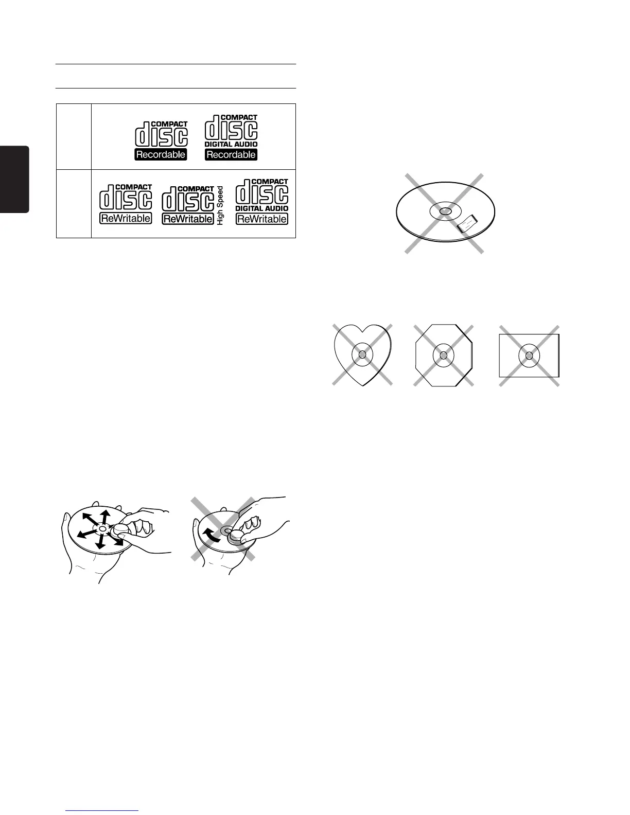 Do not attempt to play a disc with a special shape