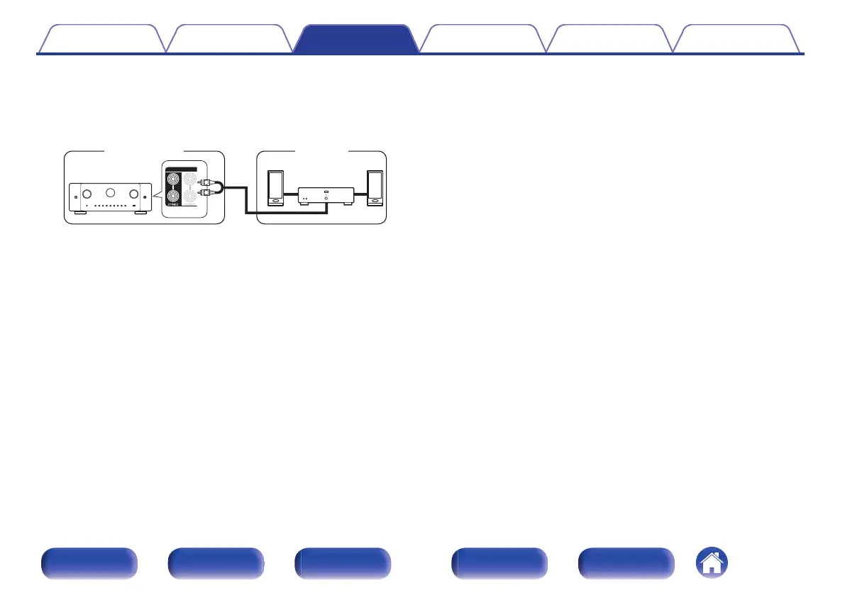 The audio signals of this unit’s ZONE2 audio output connectors are