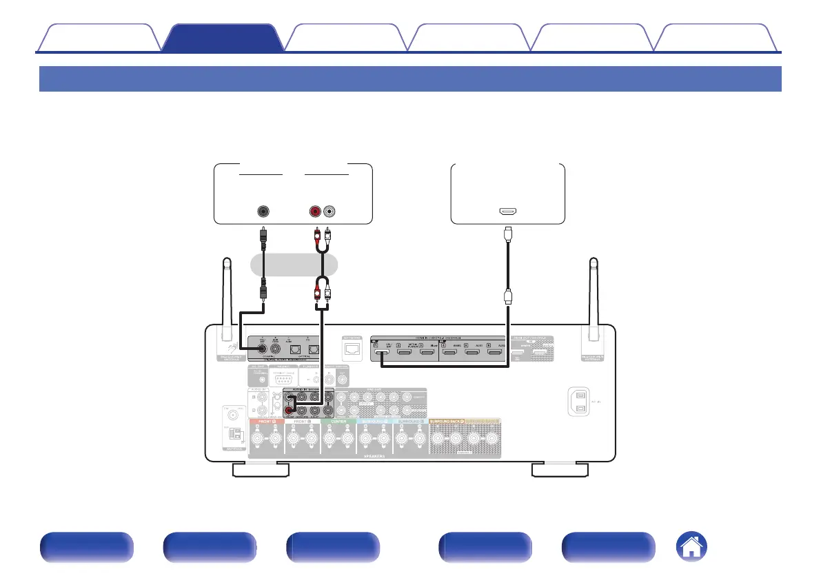This explanation uses the connection with a satellite tuner/cable TV STB as an example.