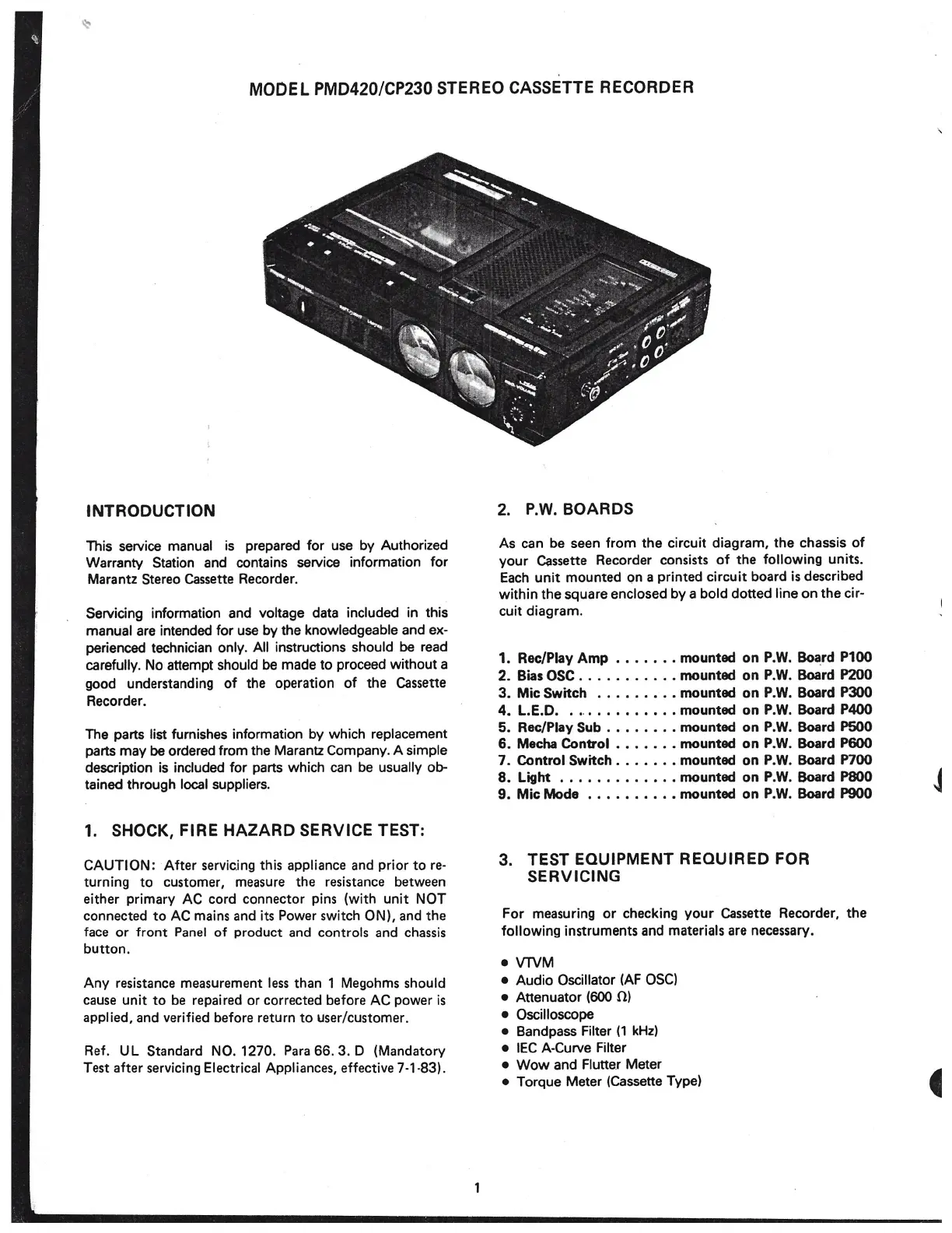 MODEL PMD420/CP230 STEREO CASSETTE RECORDER