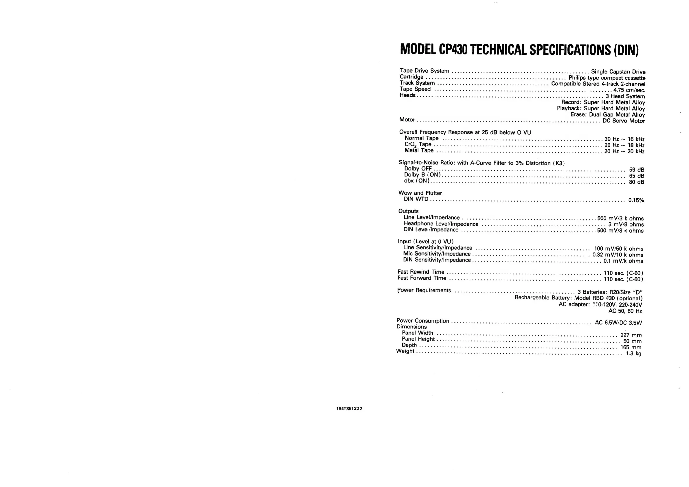 Marantz cp430 - TECHNICAL SPECIFICATIONS