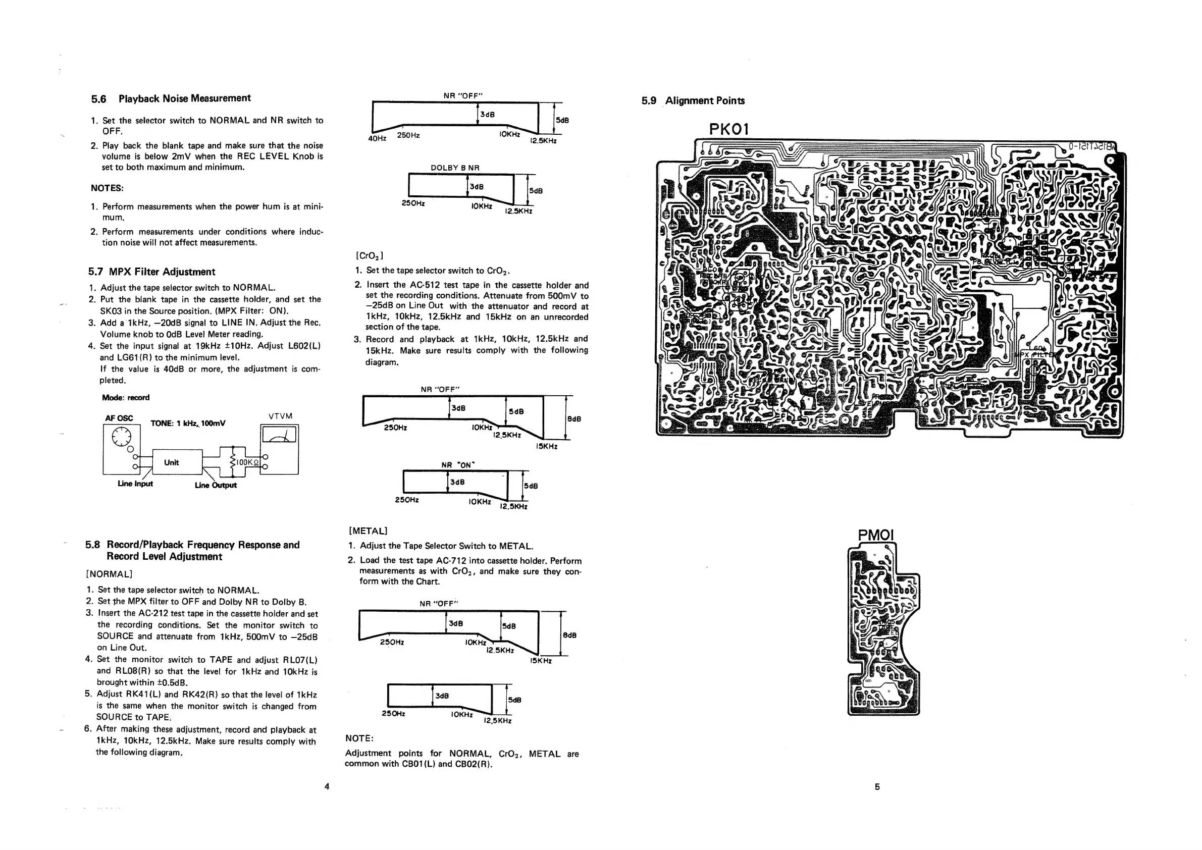 Marantz cp430 - Playback Noise Measurement; MPX Filter Adjustment; Record;Playback Frequency Response and Recording Level Adjustment; Aligniment. Ponts