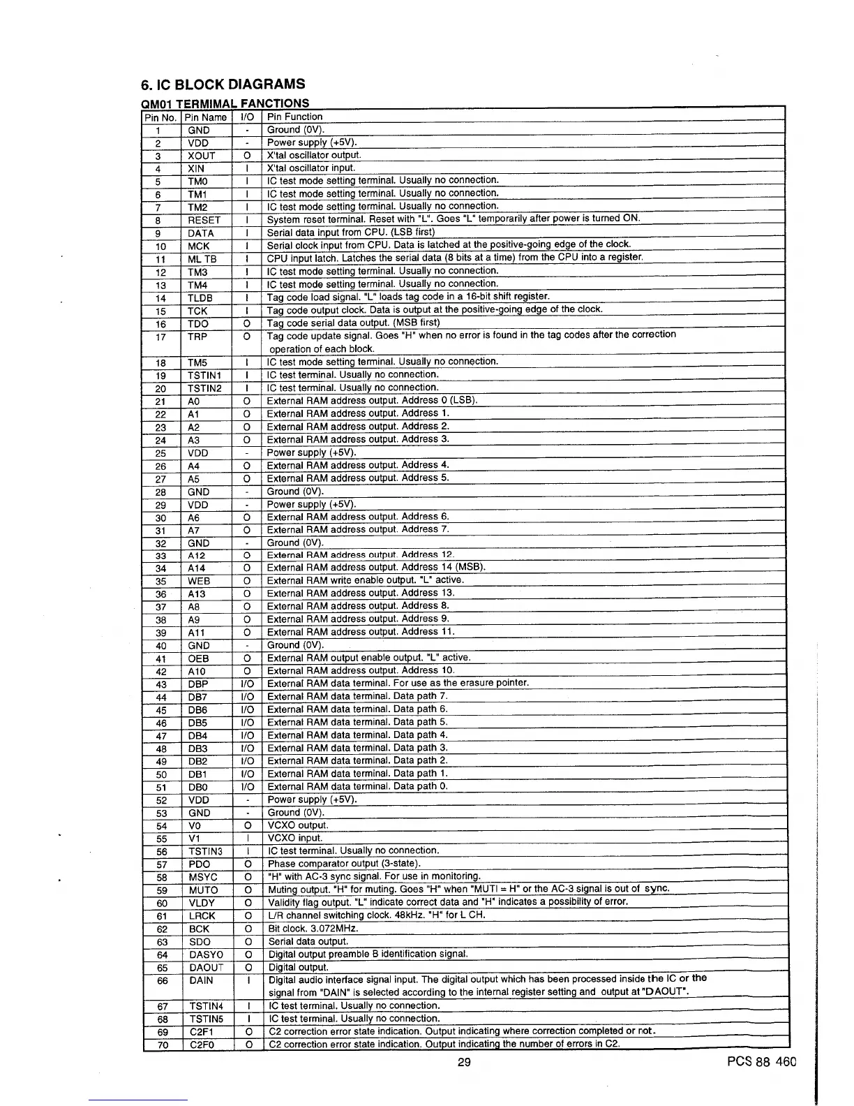 Marantz DP870 - 6. IC BLOCK DIAGRAMS; QM01 TERMINAL FUNCTIONS