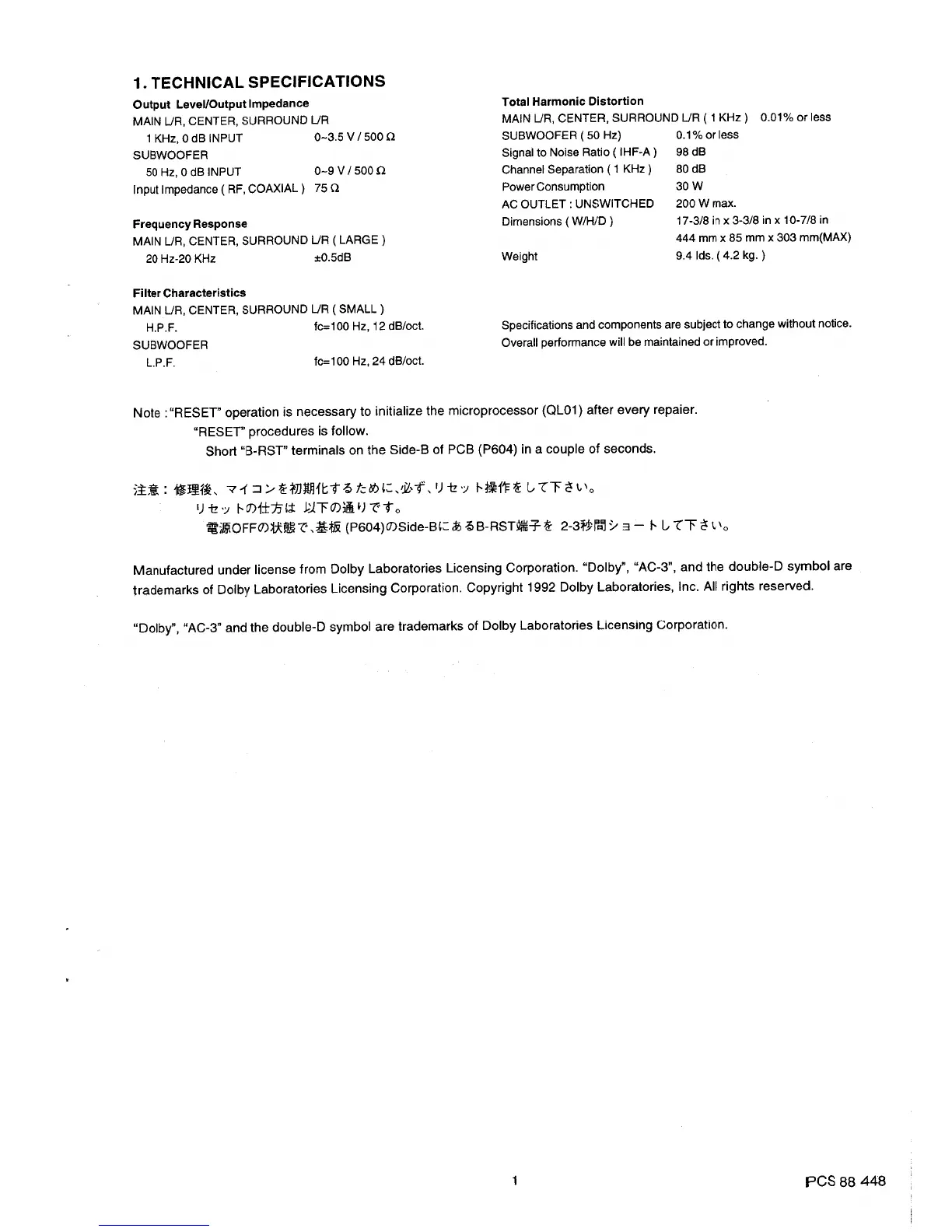 Marantz DP870 - 1. TECHNICAL SPECIFICATIONS