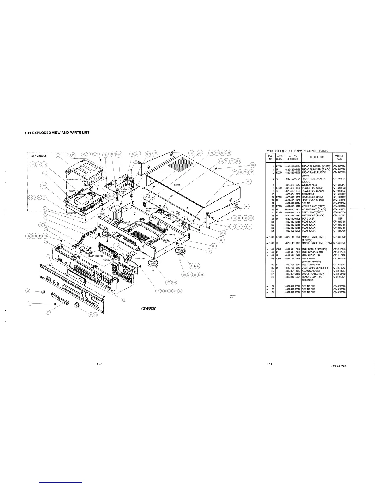 Marantz DR700 - Exploded View and Parts List; CDR630 Component Breakdown