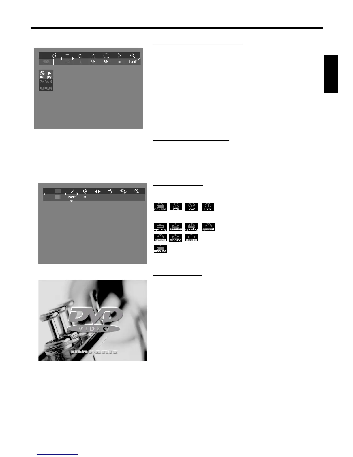 La fenêtre d’état affiche l’état en cours du lecteur et apparaît avec la