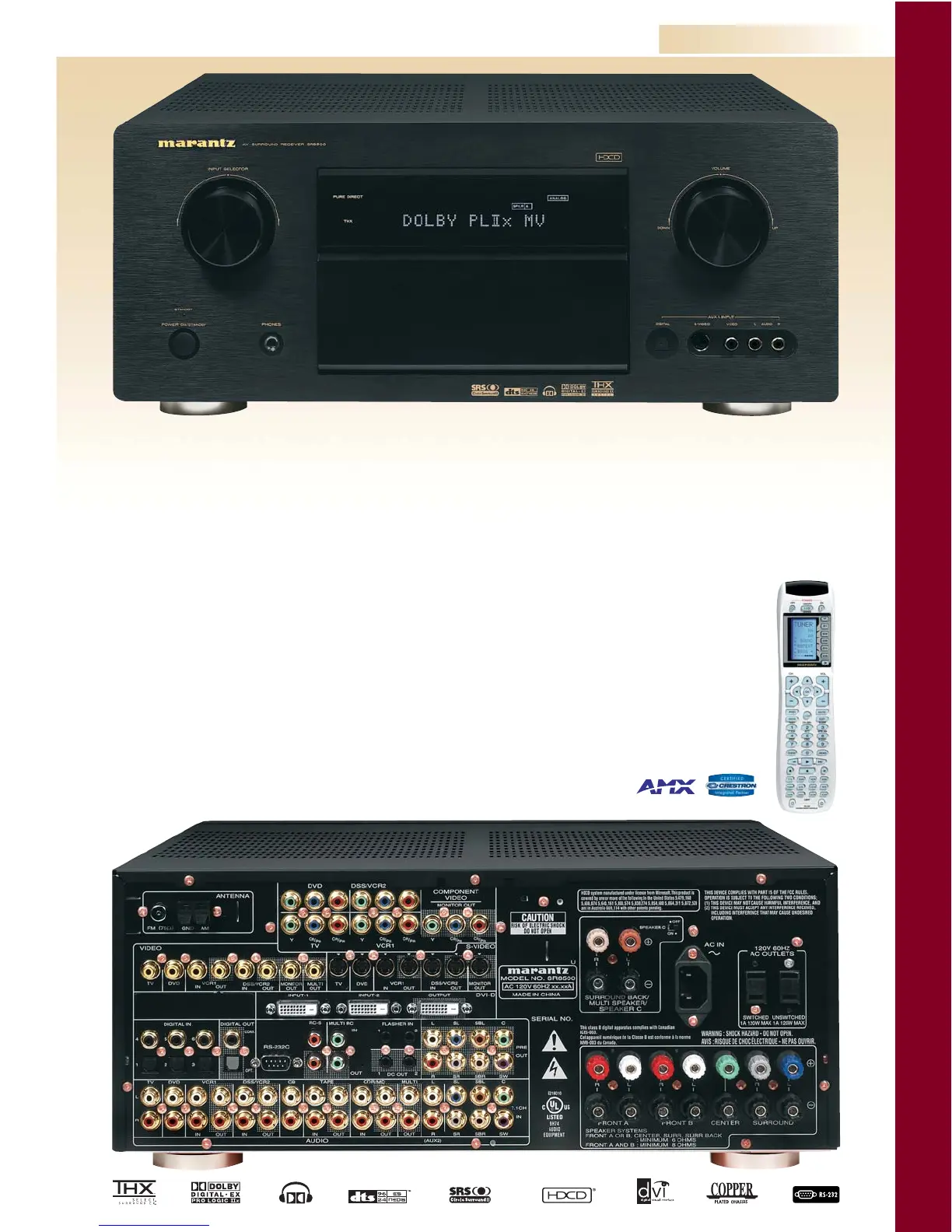 The SR8500 combines extraordinary flexibility and rarely found simplicity. The THX Select designation assures accurate reproduction of movie