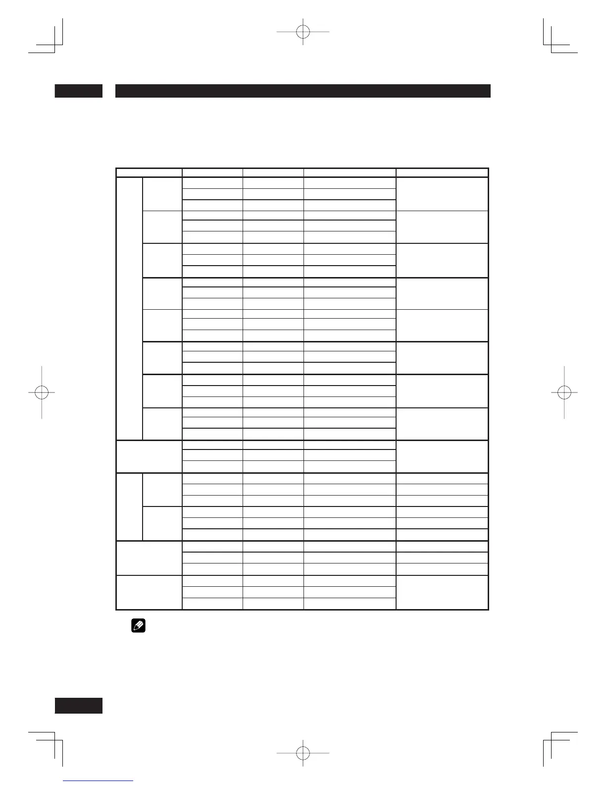 mode setting using the Audio Out setting, audio output for each source will be as shown in the
