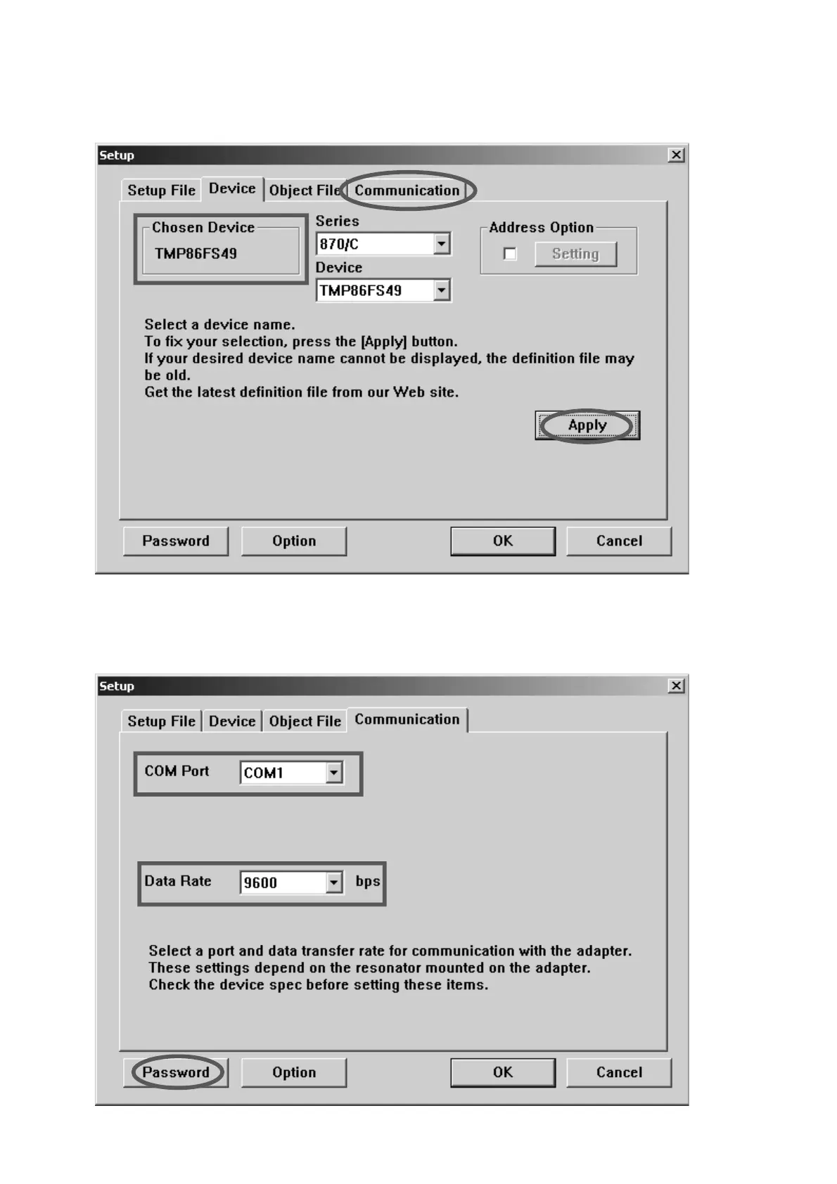5. Click the Apply, then TMP86FS49 appears in the Chosen