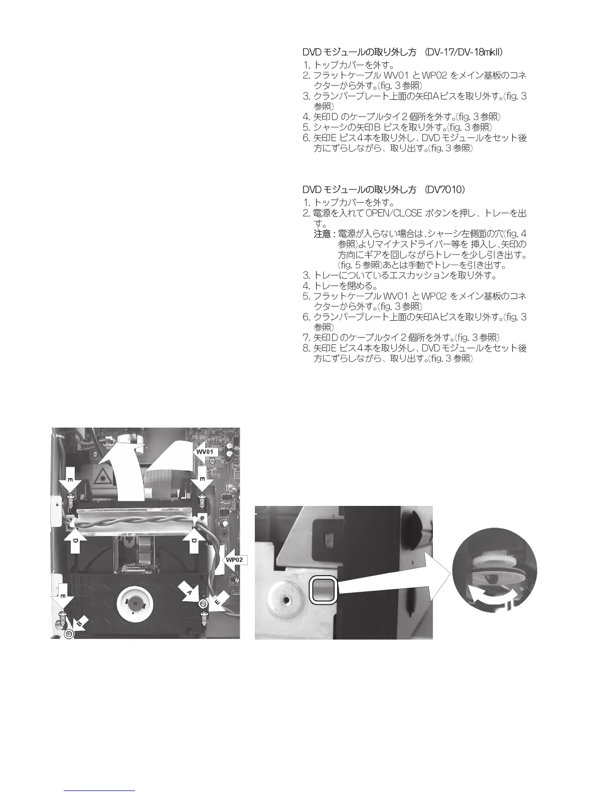 5. Disconnect the two flat cables (WV01 and WP02) from the