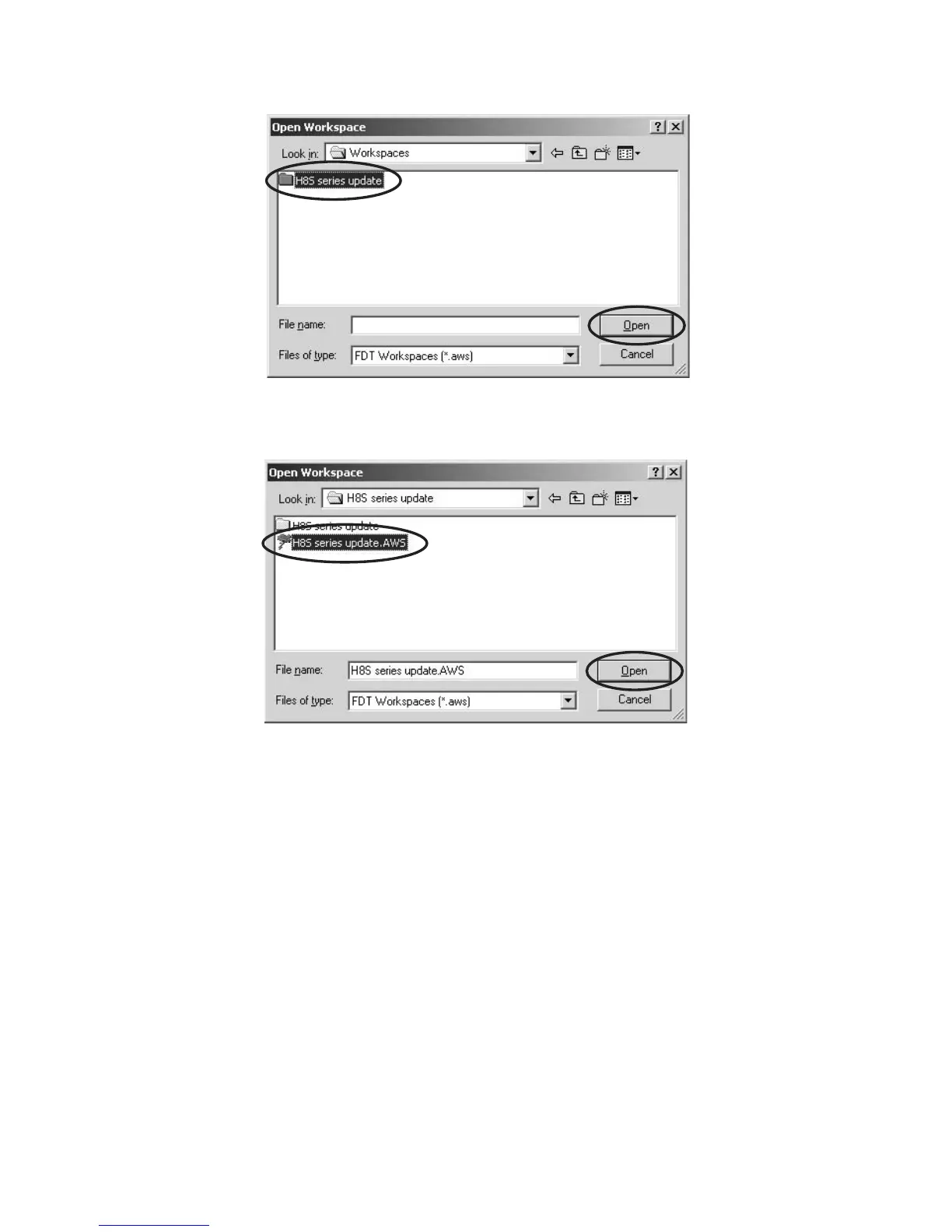 Click the H8S series update.AWS, and click Open. H8Sseriesupdate.AWSをクリックして、Openをクリッ