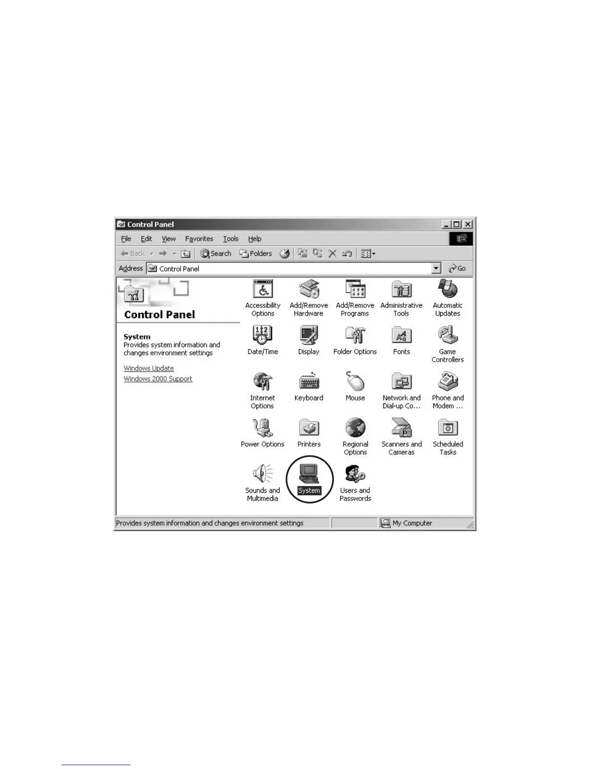1.1 Click Start\Settings\Control Panel on the task bar,