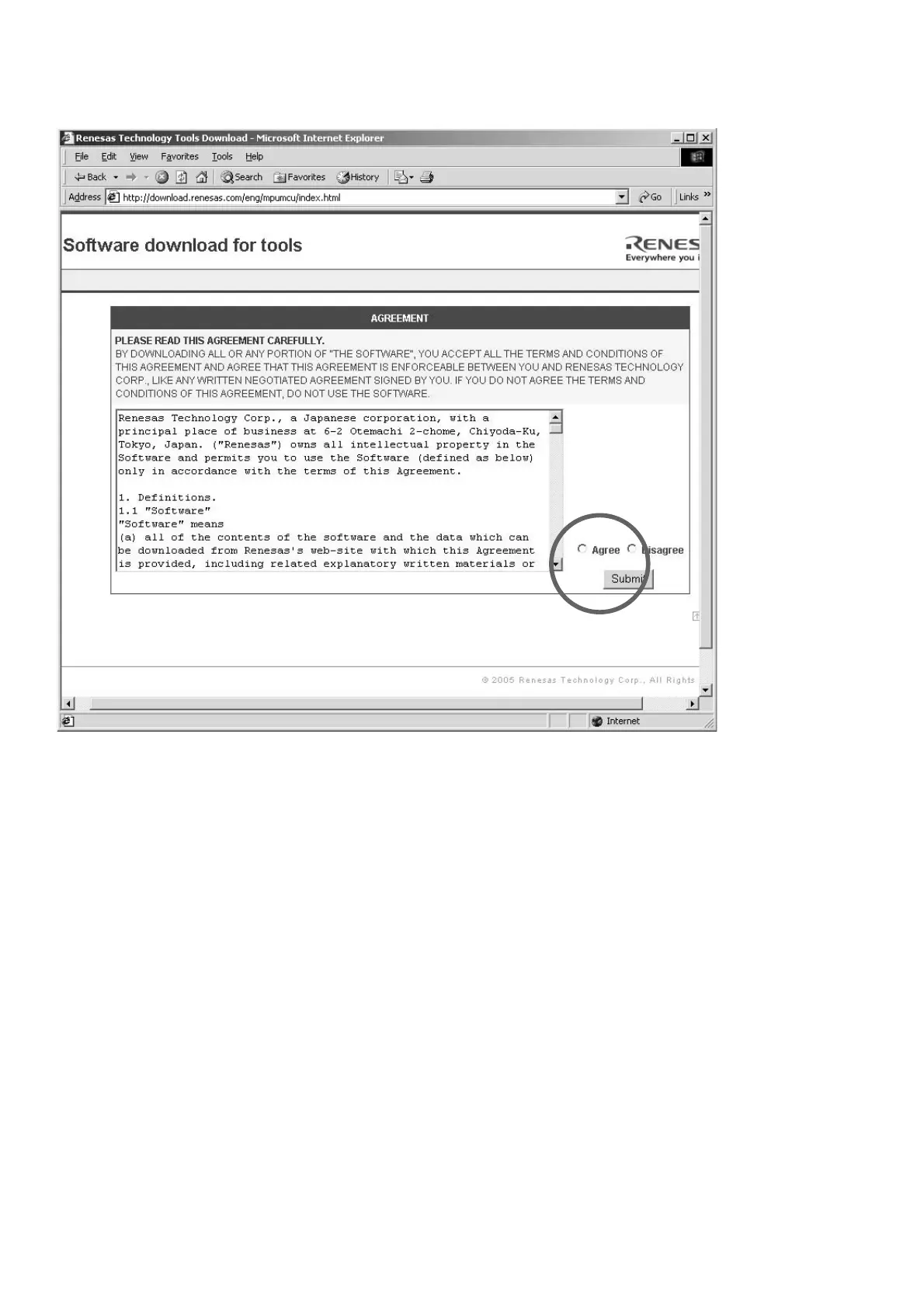 AGREEMENT から Agree にチェックを入れ Submit をクリ