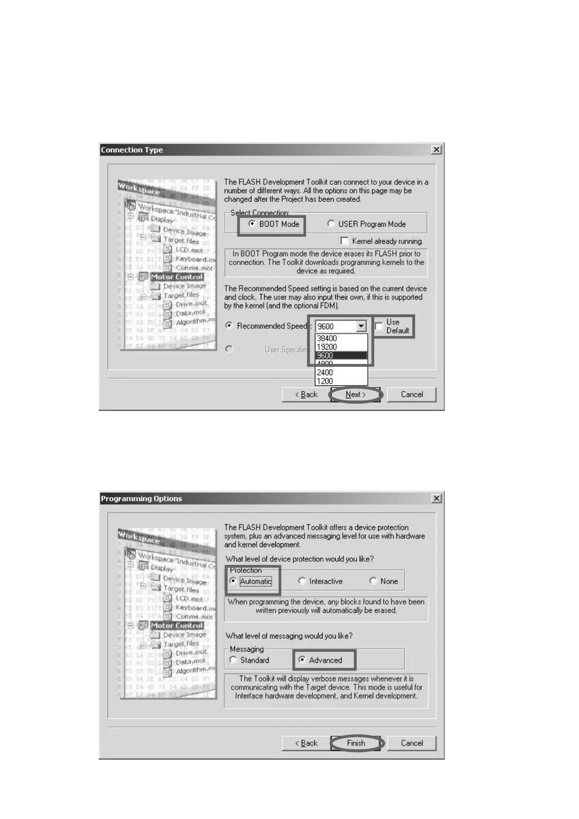 Select Connection: から BOOT Mode にチェックを入れ