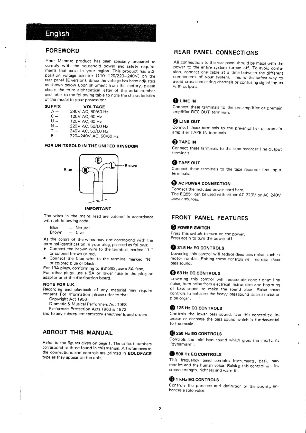 Marantz EQ551 - Introduction; Shock, Fire Hazard Service Test; P.W. Boards