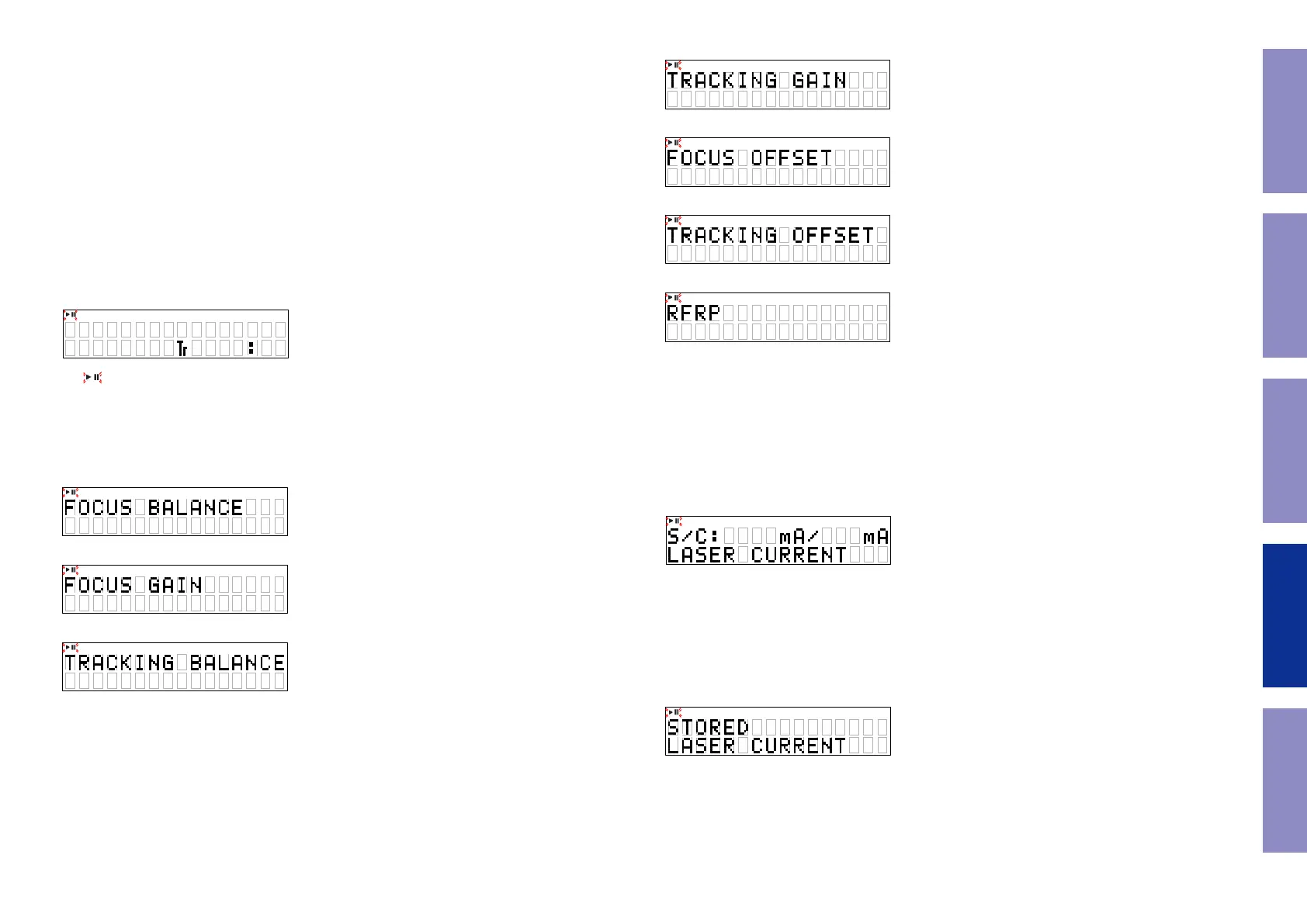 " button is pressed, the adjustment values are displayed in the following order.