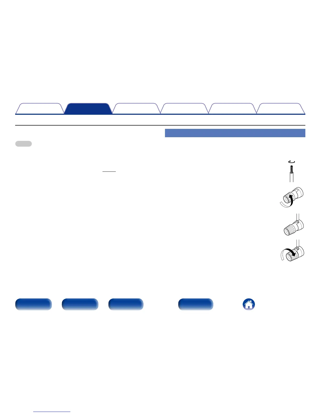 •Connect so that the speaker cable core wires do not protrude from the speaker