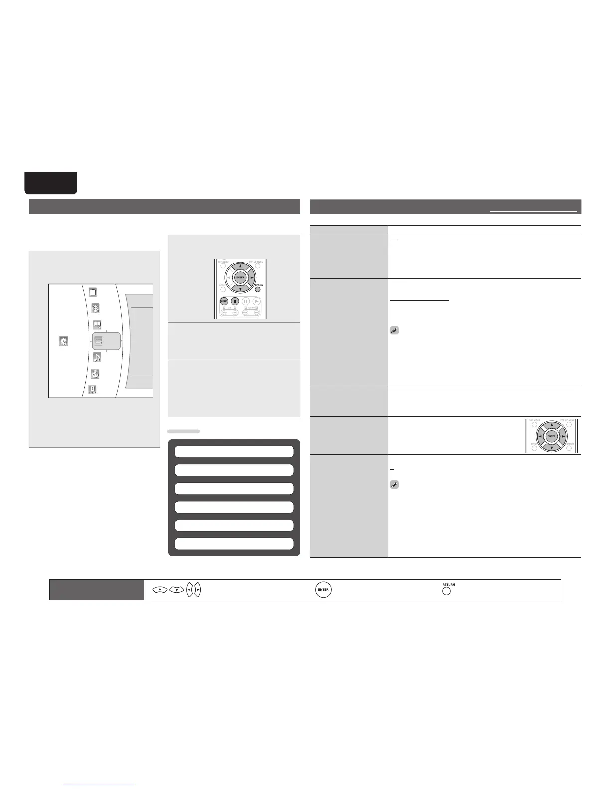 Confi rm the setting Return to previous menu
