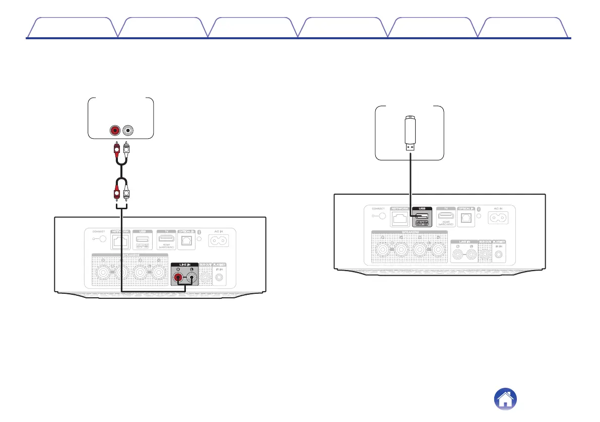 Connect the LINE IN connectors to an audio playback device with