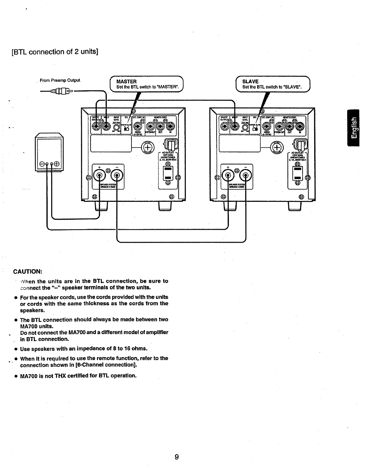 Marantz MA700 - Marantz MA700 BTL Connection; BTL MASTER Unit Configuration; BTL SLAVE Unit Configuration