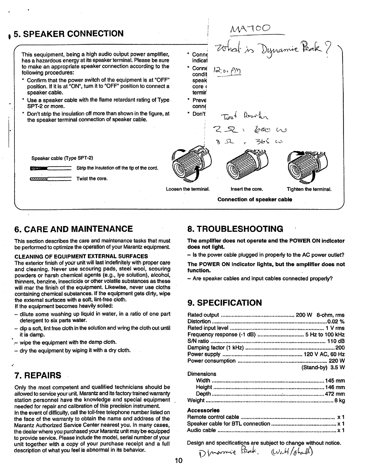 Marantz MA700 - Marantz MA700 Speaker Connection Guide; Power Off for Speaker Connection; Appropriate Speaker Cable Type; Speaker Cable Insulation Stripping