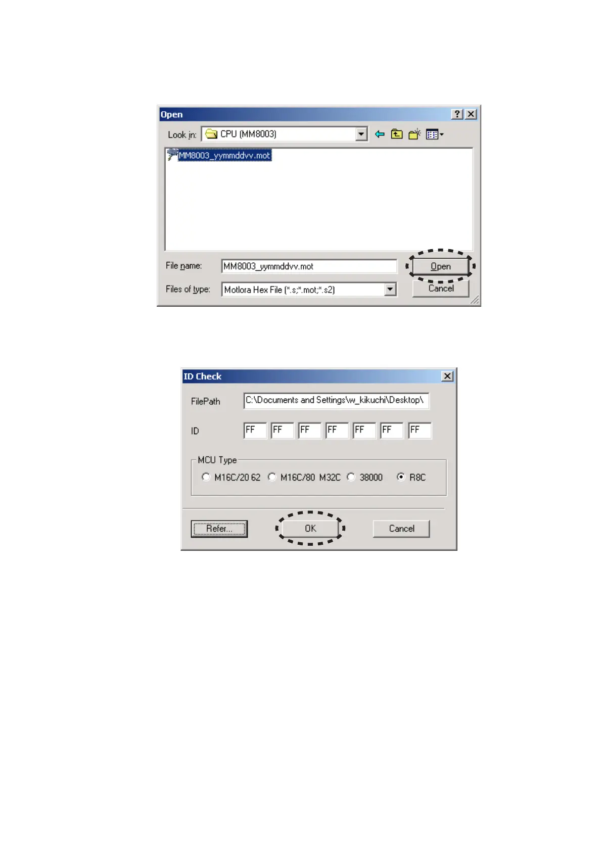 Choose the MM8003_yymmddvv.mot. And click 10. Open.