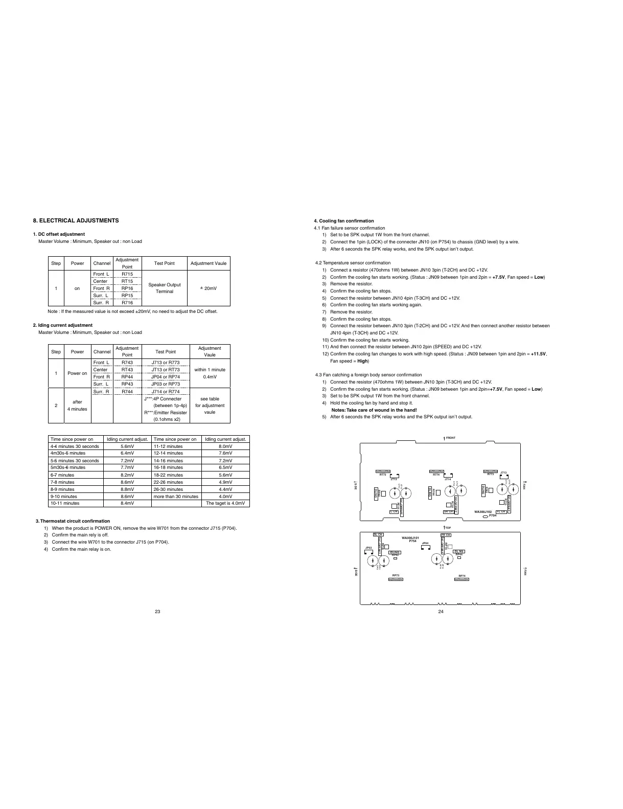 8. ELECTRICAL ADJUSTMENTS 4. Cooling fan confirmation