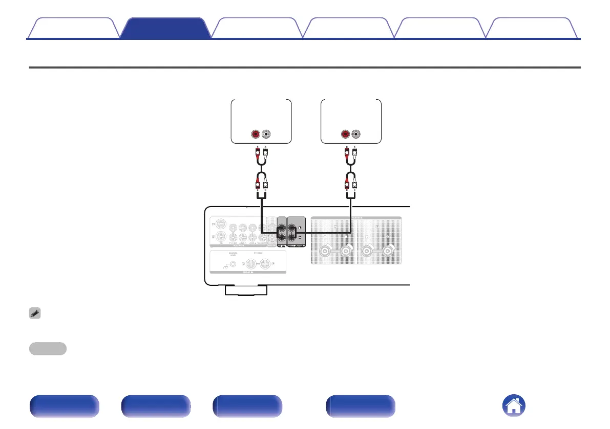 When connecting a pre-amplifier and using this unit as a power amplifier, switch the input source to “PWR AMP”. (v p. 25)