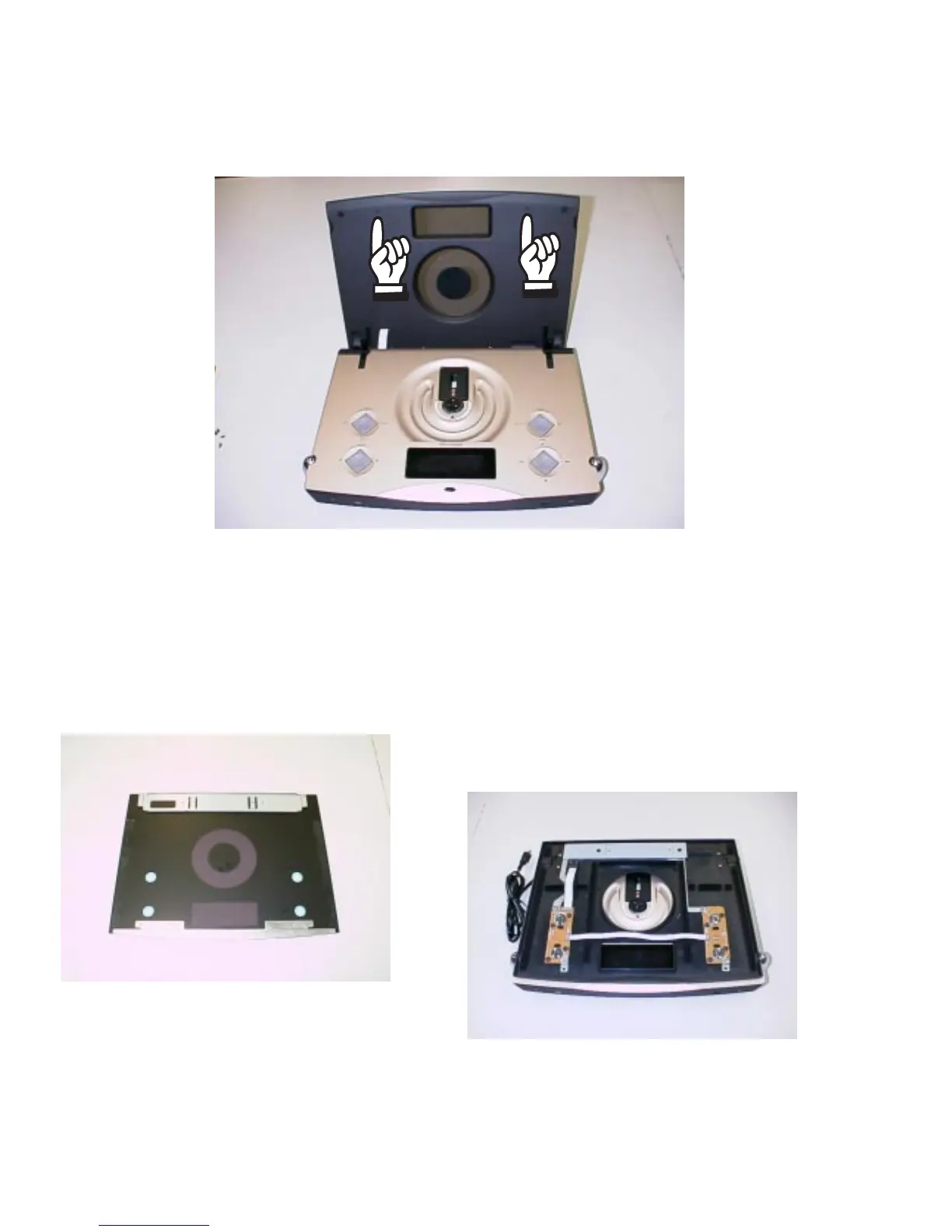 middle (on CD shaped part) from the lower part, while