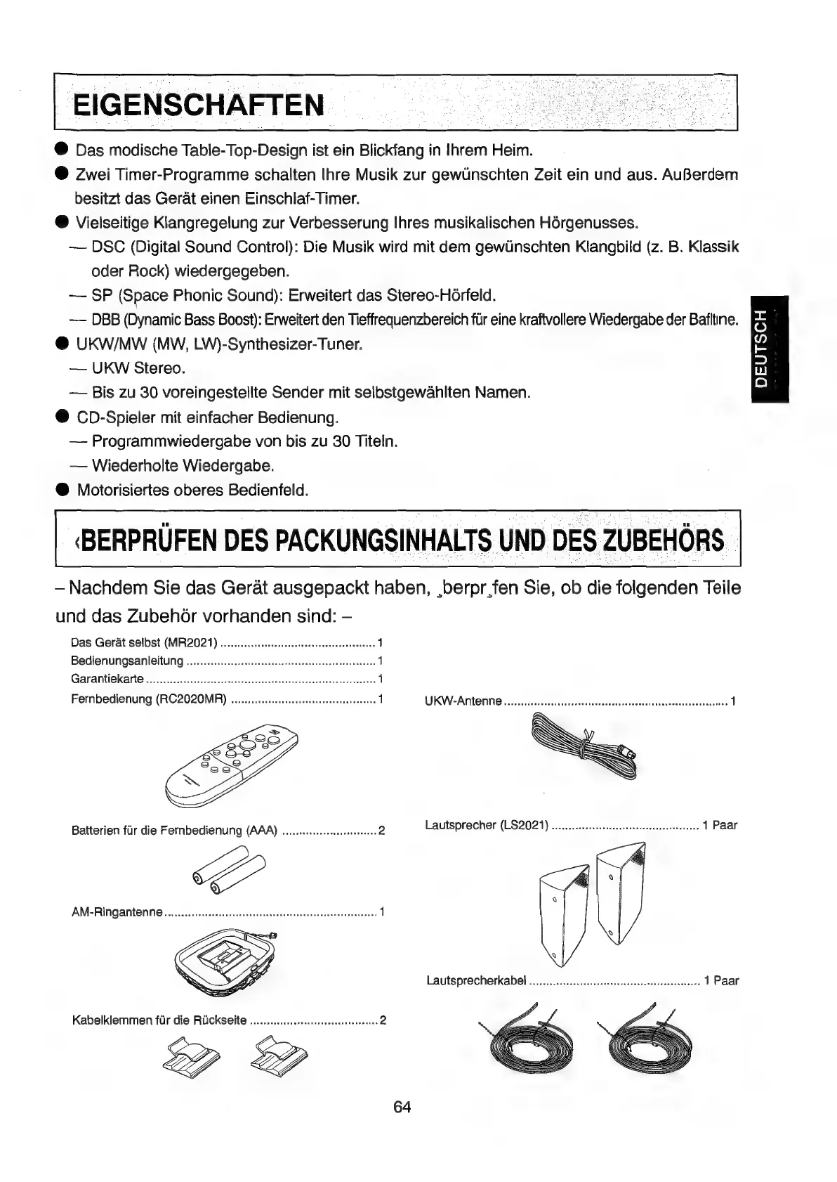 Marantz MR2020 - Berprufen des Packungsinhalts und des Zubehors; TEN Sinsssicsicstsnisaccsavsnactececscticgusteosnvedesiacesssaunasotscsasuanccnceausdcpsnaceiuseaitnaaasdaveceapuuansuoects