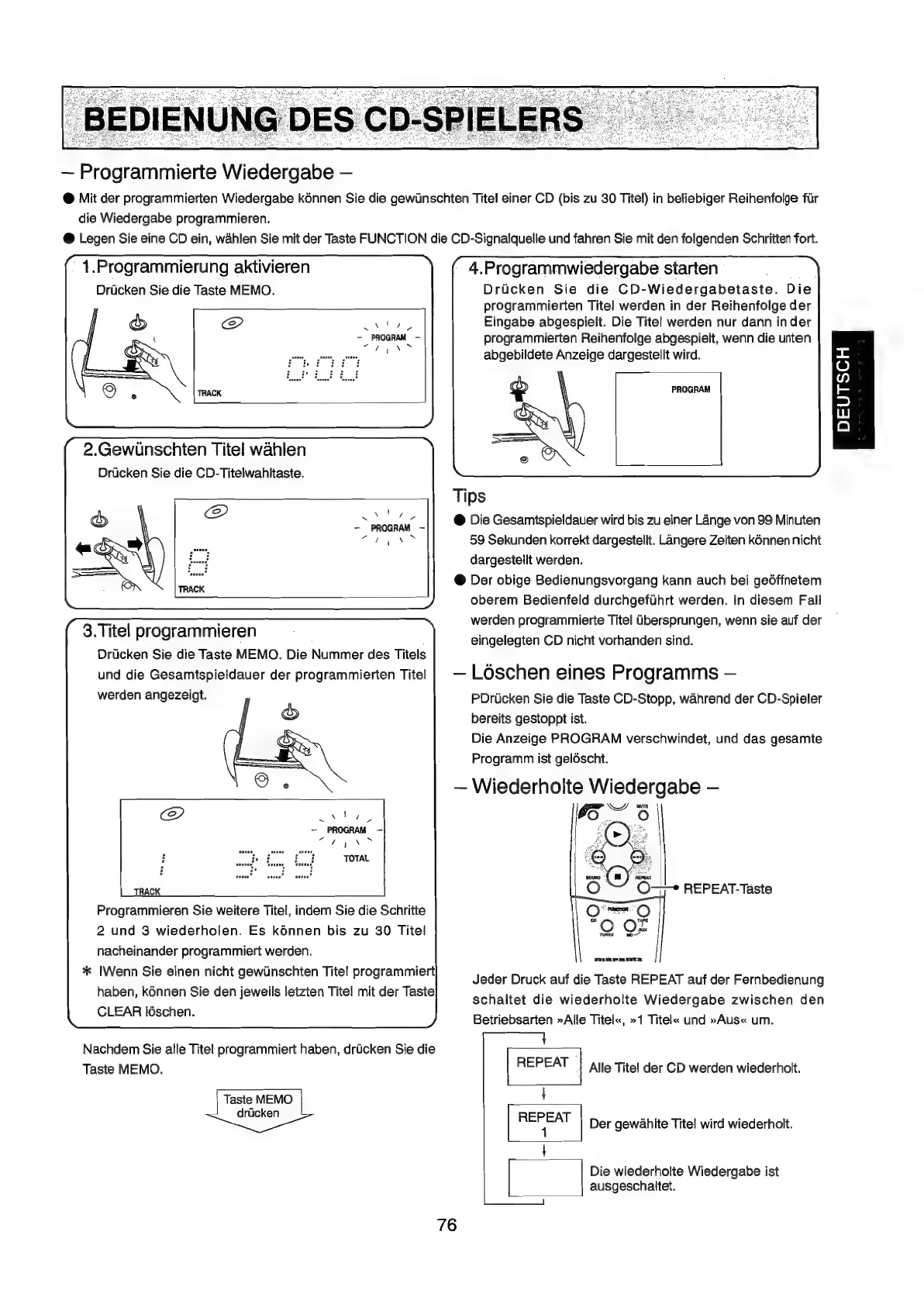 Marantz MR2020 - Loschen Eines. Programs Iscicesscscscsieesevecwsvevsedecnocecunsaundubenveasshnsasnvnseuervuseppuvasnesveccecsvucsssbiecsobbeseevoruseersouasteesecsspersesi; Programmierte Wiedergabe; Wiederholte Wiedergabe