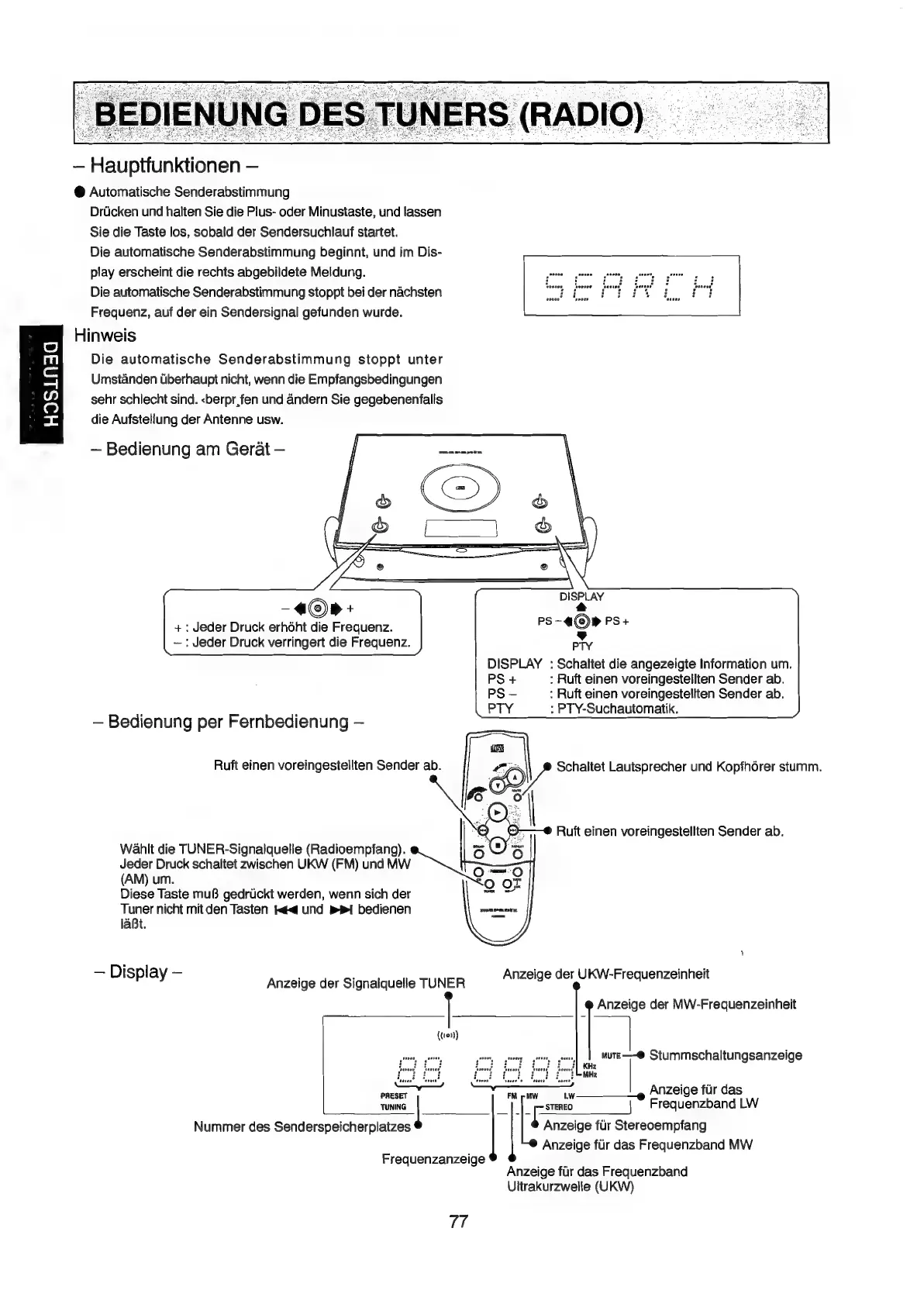 Marantz MR2020 - Automatische Senderabstimmug; Bedienung des Tuners (Radio); Fla Iptfunktione Ns ICIV.ccssevesscecsenssesvesesnvnatarciecaissosccuvsesance Staansbensnsisinnéesdusseasvenvasaususuarsnsvuscxesiaustsasssinaaocdneanseiaieseavasnacedsieeates