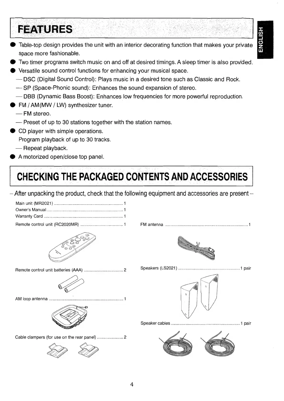 Marantz MR2020 - Features Overview; Package Contents and Accessories