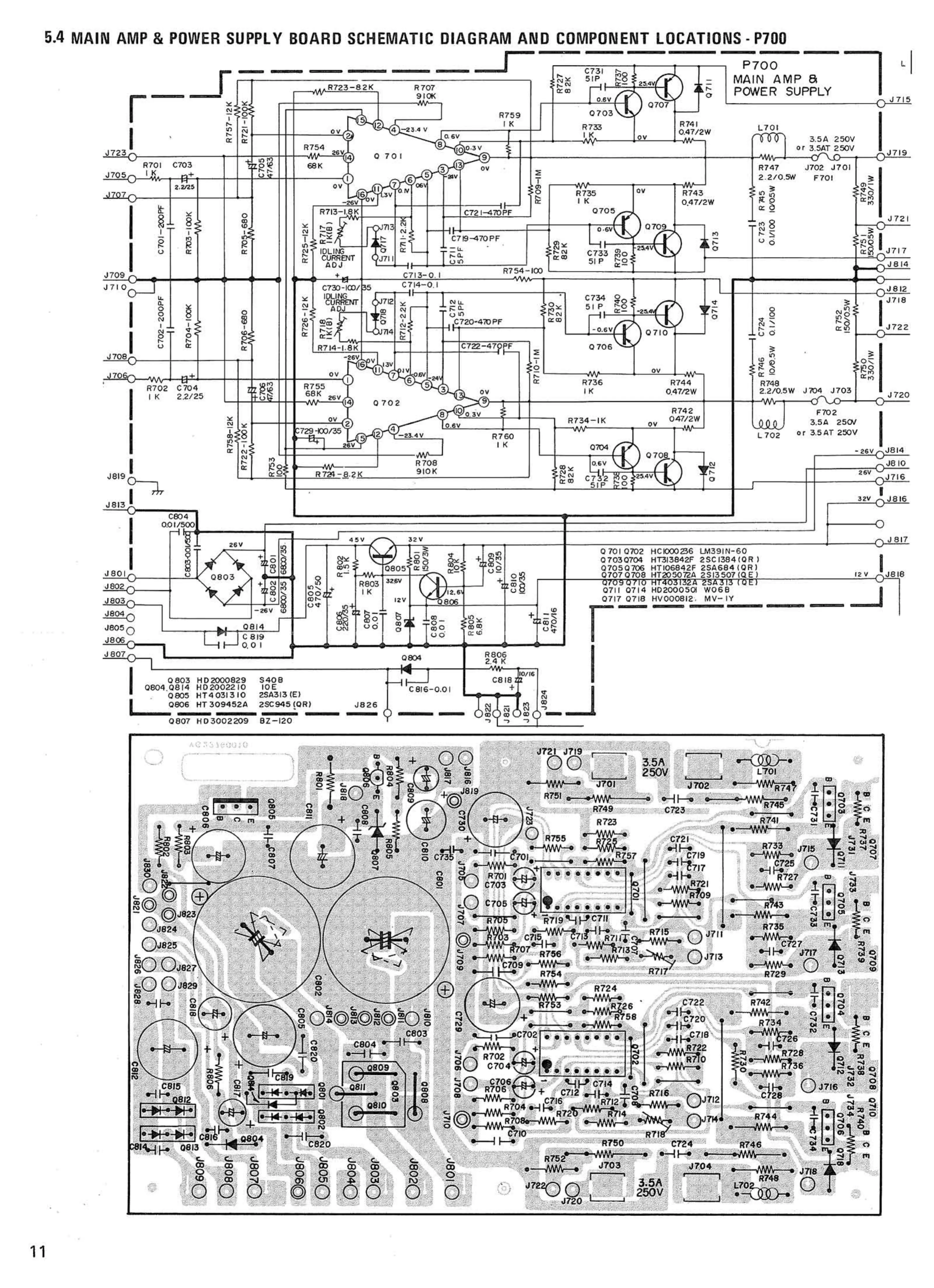 Marantz MR215 - Main Amp & Power Supply Board Schematic Diagram