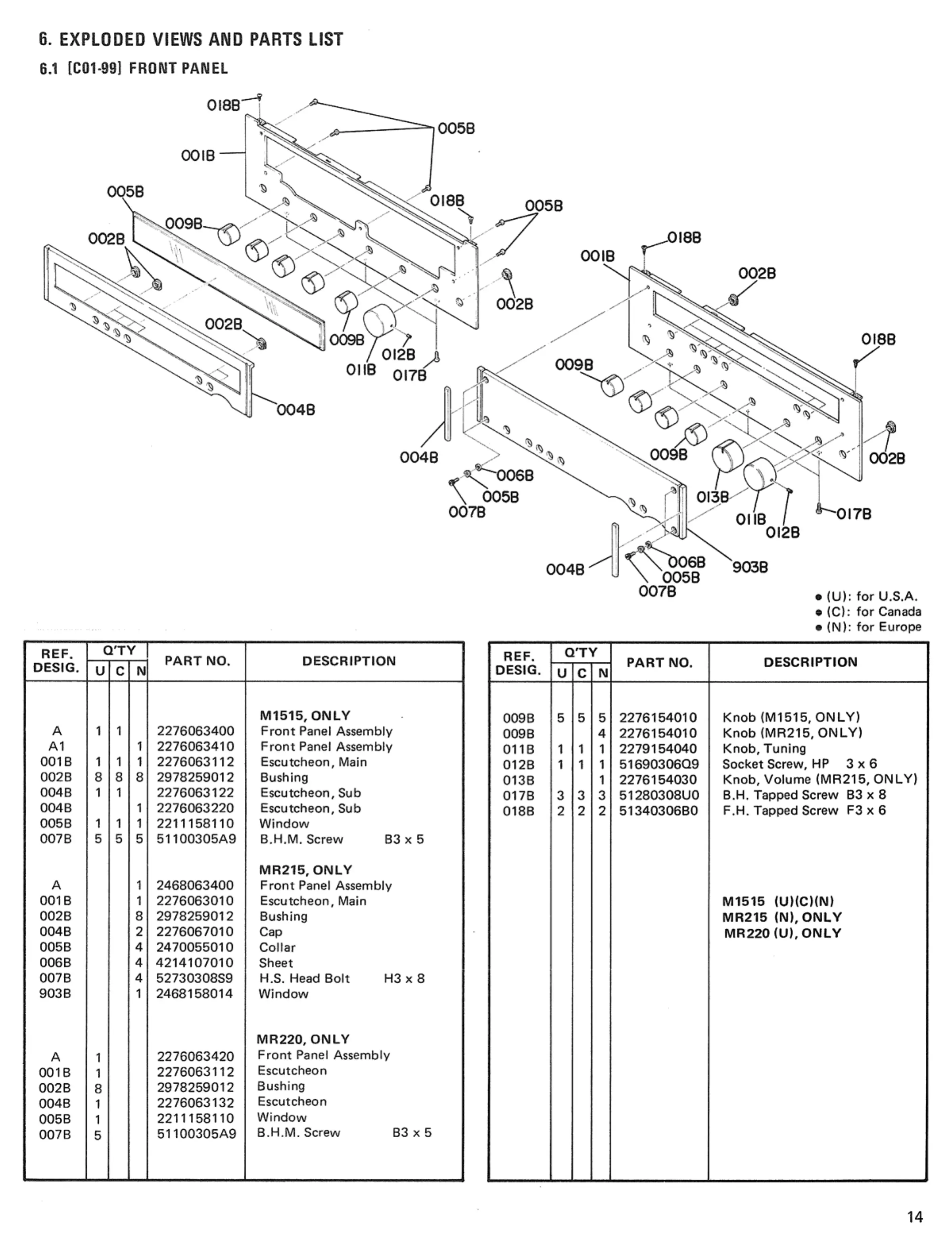 Marantz MR215 - Exploded Views and Parts List; Front Panel
