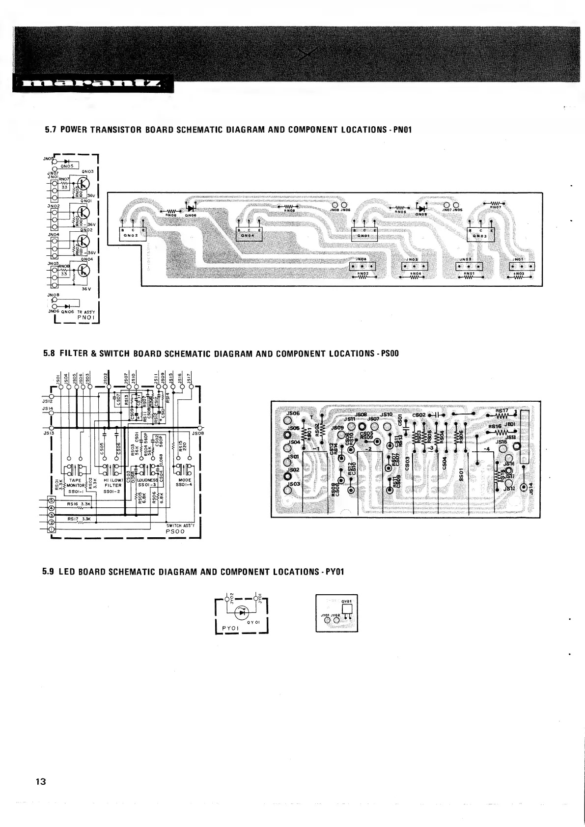 Marantz MR230 - Power Transistor Board Schematic (PN01); Filter & Switch Board Schematic (PS00); LED Board Schematic (PY01)