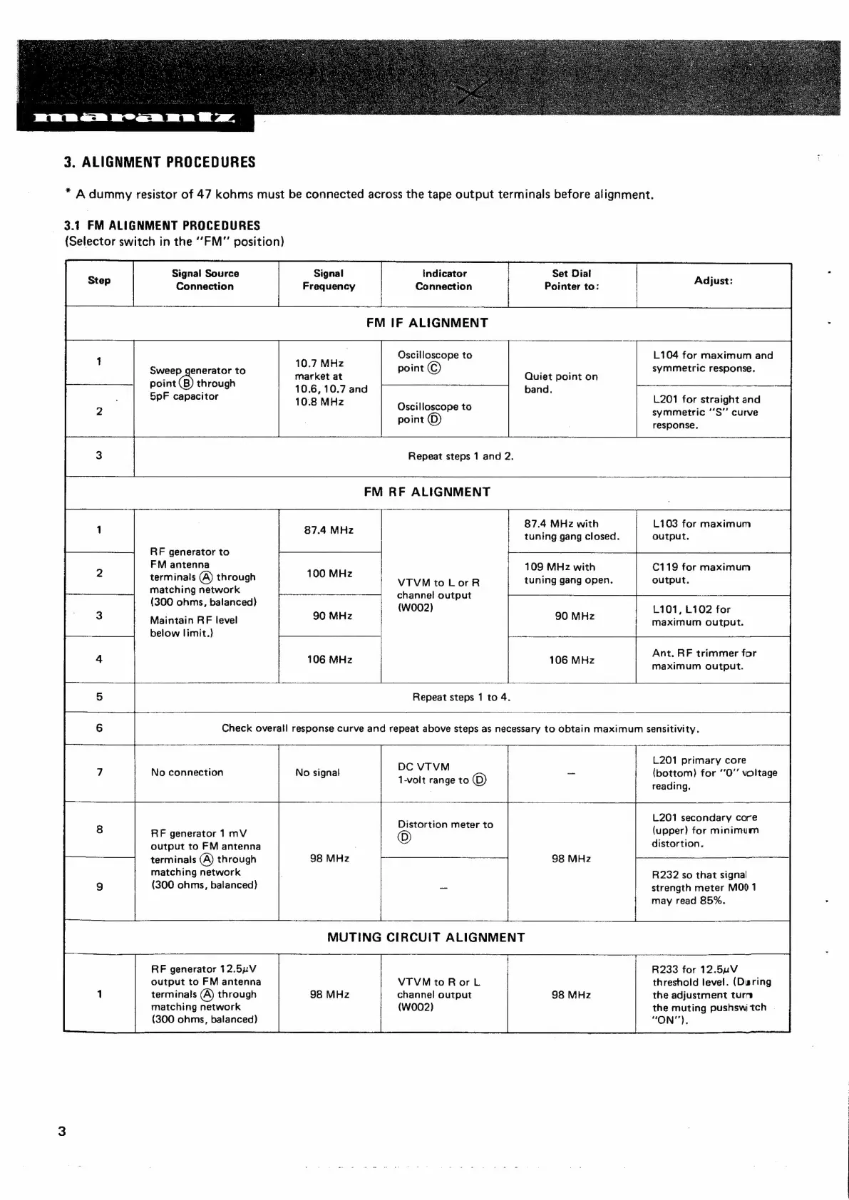 Marantz MR235 - Alignment Procedures; FM Alignment Procedures