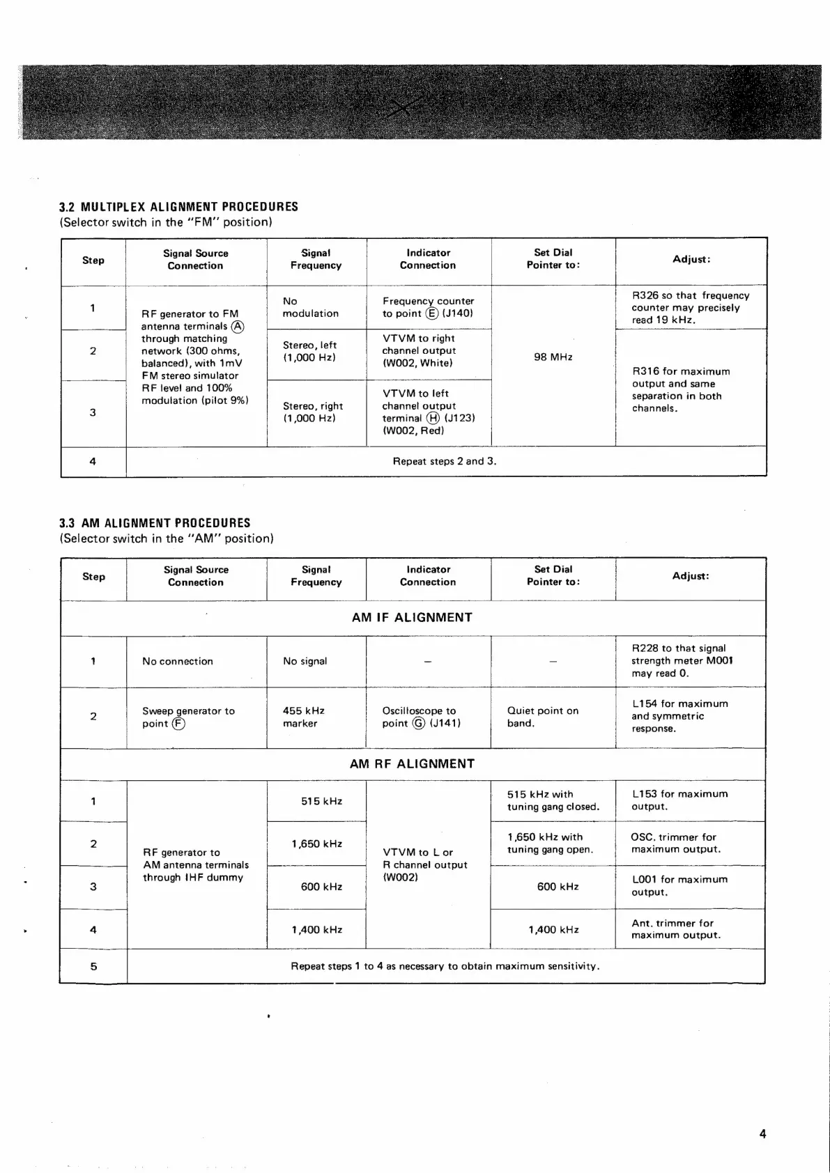 Marantz MR235 - Multiplex Alignment Procedures; AM Alignment Procedures