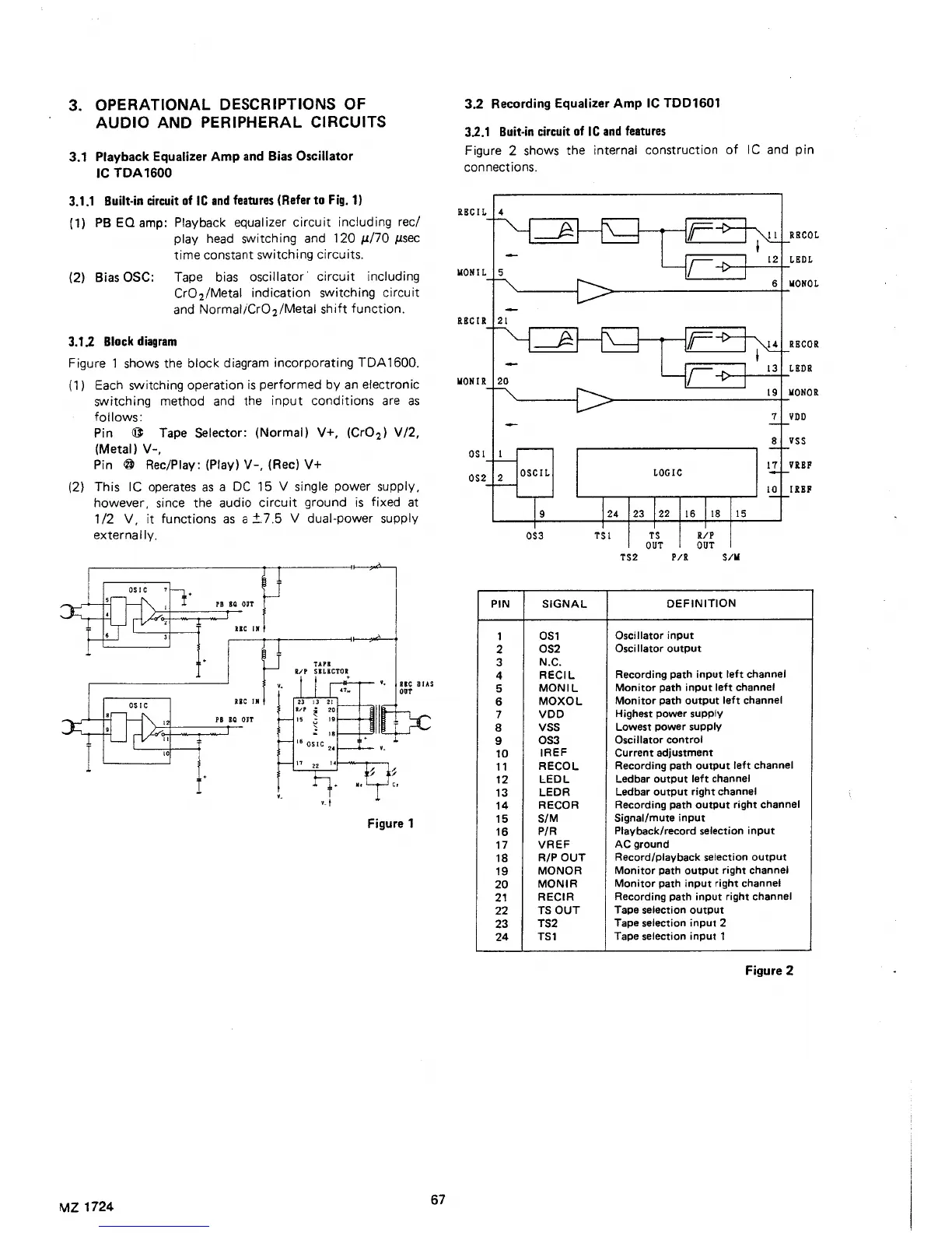 Marantz MX673 - AUDIO AND PERIPHERAL CIRCUITS; BUILT-IN IC CIRCUIT AND FEATURES (PB EQ); PB EQ BLOCK DIAGRAM; RECORDING EQUALIZER AMP IC TDD1601
